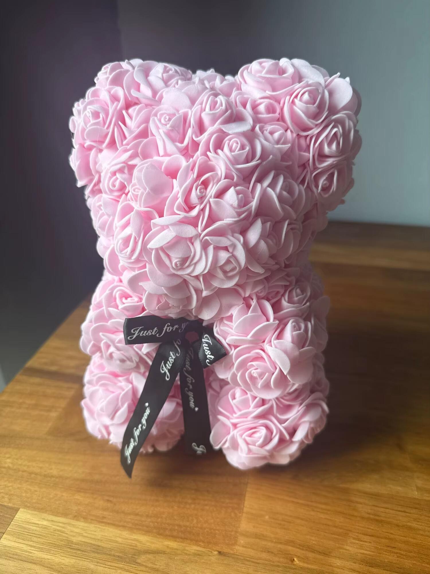 A rózsa maci egyik legnagyobb előnye, hogy nem hervad el és nem igényel semmilyen gondozást. Megfelelő körülmények között hosszú ideig megőrzi formáját és élénk színeit, így nem csak egy pillanatnyi meglepetés, hanem egy tartós dekoráció és emlék is. 🧸🌹